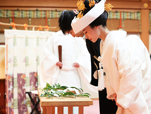 厳かな雰囲気の中での花嫁行列はとても素敵です。